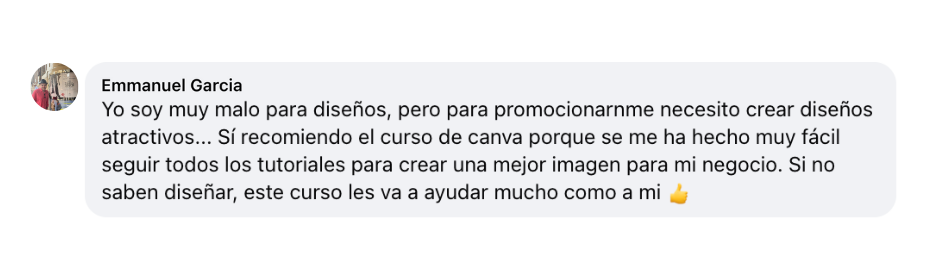 Todo cambió cuando descubrí los secretos para usar Canva. Además, me di cuenta de que, así como yo, cualquier persona puede crear anuncios y contenido increíble para sus redes sociales en poco tiempo.